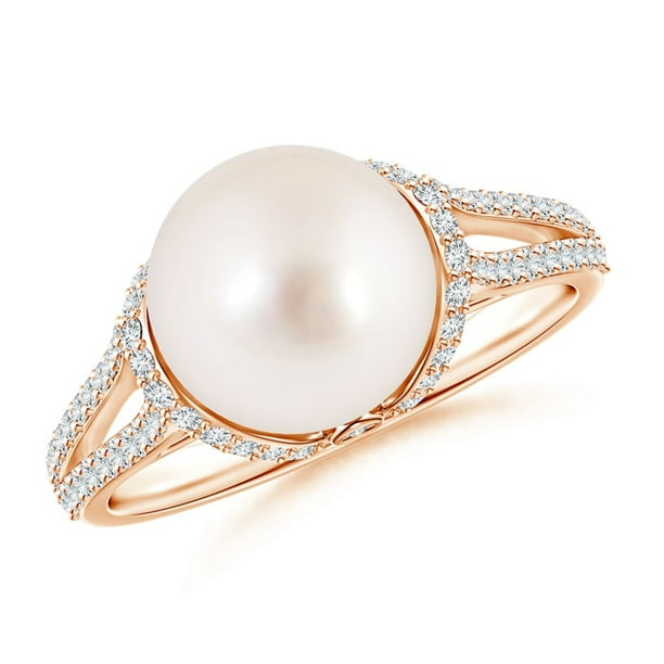 June Birthstone Twin Shank South Sea Cultured Pearl And Diamond Cradle Ring For Women In 14k Rose Gold 9mm South Sea Cultured Pearl Walmart Com