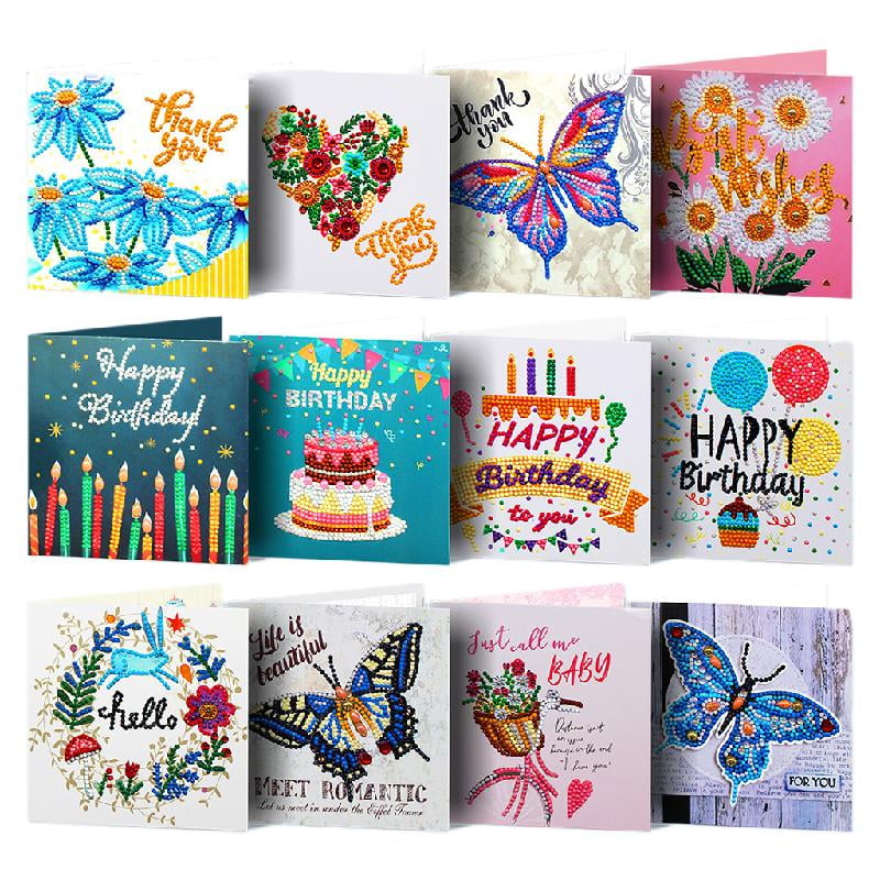 Doyoung 12 Pcs Set Diy Diamond Painted Birthday Cards Holiday Thank You Greeting Cards Making Kit Art Craft Gifts For Family Walmart Com